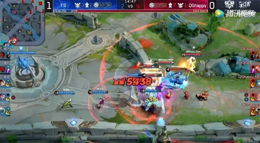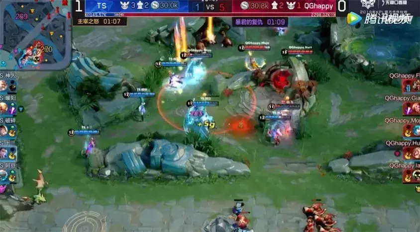 这样一来,TS只会越打越急躁,然后出现失误减员,QG就能围绕着黄忠来推高地塔了。