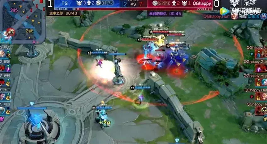 这样一来,也变相的加强了QG的阵地战能力,让TS一点切入办法都没有,只能全部人躲在黄忠的轰炸范围外,眼睁睁的看着黄忠推塔。