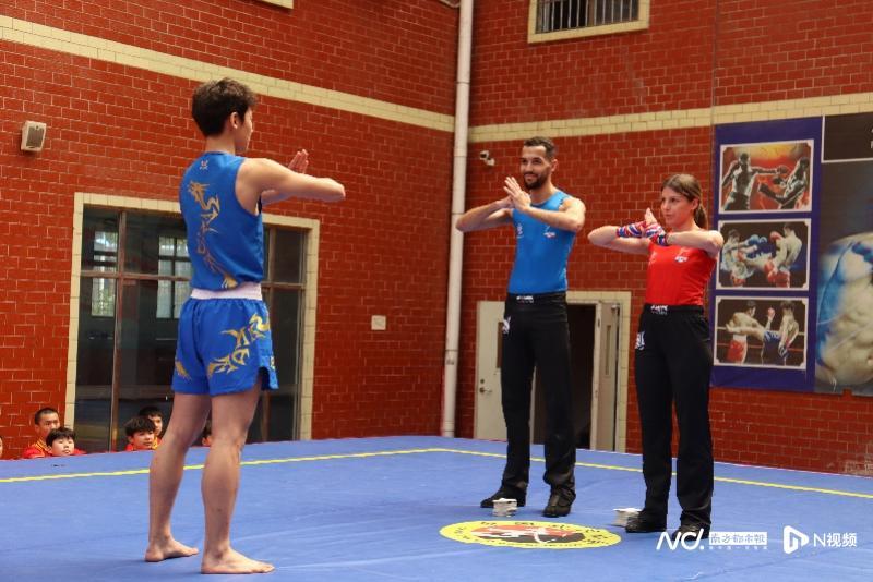 来到黄飞鸿文武学校后,妮娜和阿米涅受到了学员们的热烈欢迎,他们也展示了各自的招牌动作,并为学员们一一解答他们习武之路上遇到过的困难和解决之道。“虽然我很早就开始了拳击训练,但是拿世界冠军可并不早,希望大家多努力,练武术不是一天就可以成为冠军的。”妮娜说。而学员们则为远道而来的客人演示了散打以及佛山当地最具盛名的高桩狮艺,两位冠军看得津津有味,连连为舞狮者高难度动作鼓掌叫好,并在表演后饶有兴趣地研究着狮头内部机关,赞叹非遗狮艺的奇思妙想。