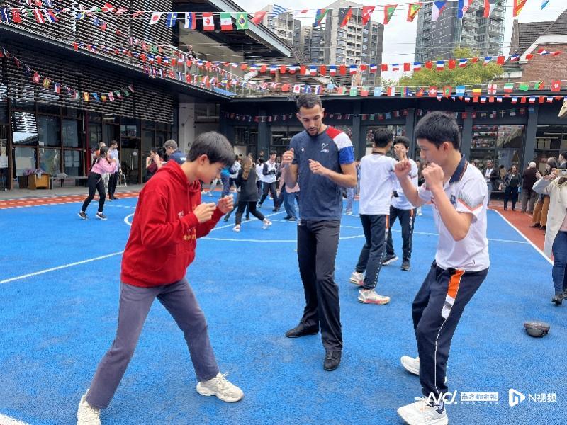 而除了职业擂台,这一运动在法国更广泛被运用于大众健身,“这是一项结合了有氧和无氧的运动,老少皆宜,不仅可以减脂塑形,还可以锻炼人的注意力和意志力。”法国法式拳击联合会主席乔尔·杜梅介绍说,“法国的很多大中小学也都有开设赛法斗课程,受到青少年欢迎。”而在广州的访问活动里,冠军运动员和教练员便在法国国际学校指导了孩子们操练入门动作,学生们都练得相当起劲。