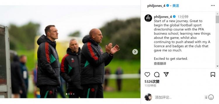 菲尔-琼斯写道:“新征程的开始,很高兴能在PFA商学院开启全球足球运动管理课程,学习关于足球运动的新知识,同时继续在这家给予我很多的俱乐部努力获得我的A级(教练)执照。很期待开启这一旅程。”