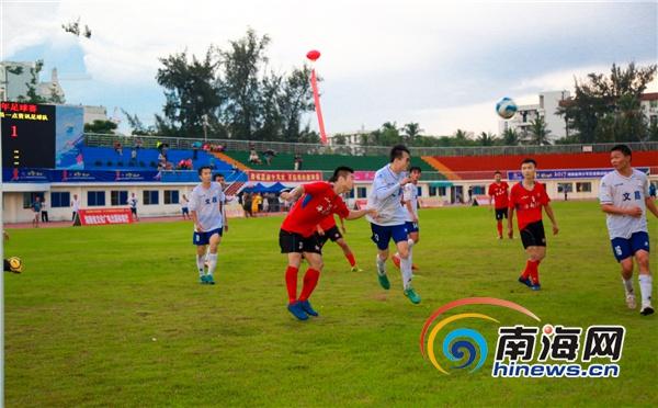 在5日下午举行的决赛中,冠亚军决赛队伍分别是海口海航红色战车队和文昌一点资讯足球队。上半场海在比赛进行到20分钟的时候,由海口海航红色战车队9号郑炫打破僵局,以1:0领先。文昌队在先失一球的情况,没有失去斗志,以犀利的防守反击,在门前对方犯规获得一次点球机会扳回比分,战车队在上半场最后阶段一个漂亮的配合再下一城。最终,双方以2:1的比分结束上半场。