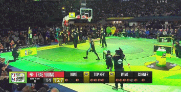 特雷-杨、哈利伯顿、唐斯、利拉德,四人都是26分,并列第一,按照规则,要加赛30秒,决出三人进决赛!