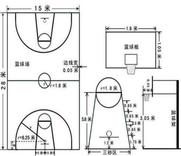 球迷虽然经常在篮球场上打球,但可能还有很大一部分球迷不知道,篮球场长多少?宽多少?篮筐高多少?等等问题。今天我们就来通过图文了解一下篮球场的各个参数。