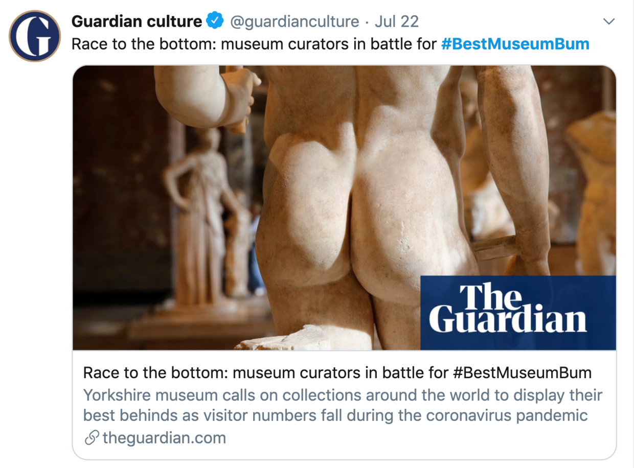 上个月,约克郡博物馆在推特上发起了一项沙雕挑战——博物馆蜜桃臀大赛。