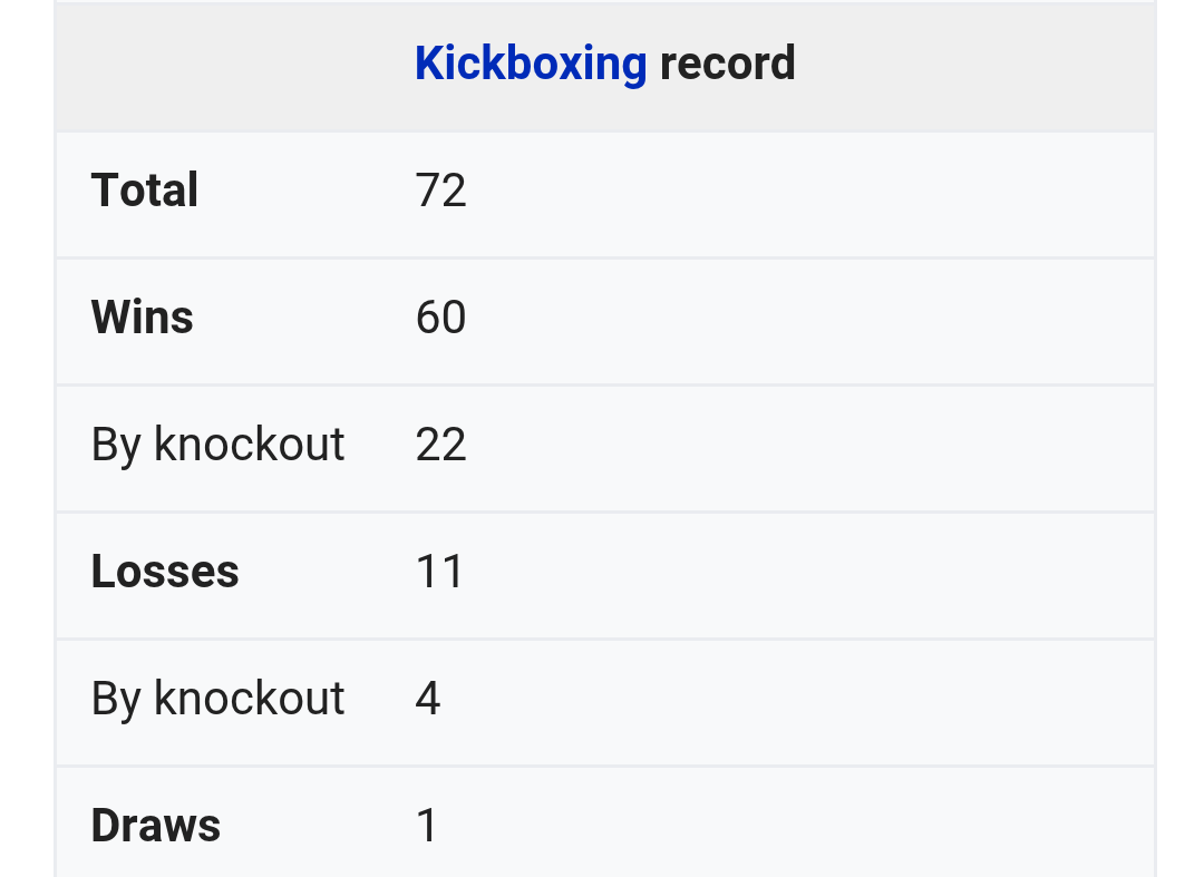 值得一提的是,一龙步入职业赛场八年来,维基百科也对其职业战绩做了详实的记载,根据维基百科统计,一龙的职业战绩为72战60胜11负1平22场KO对手,4场被对手KO。四名KO一龙的拳手分别是“美国特警”格罗特、美国“海豹突击队长”皮克豪尔、“日本伪娘”长岛雄一郎和“娃娃脸杀手”西提猜。