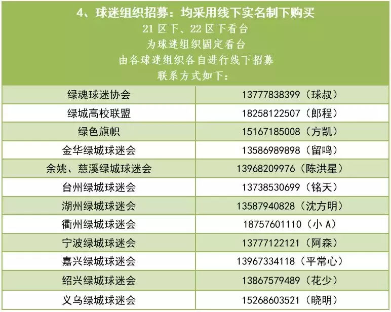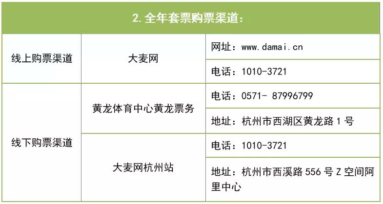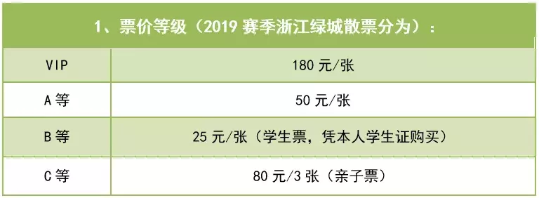 2019赛季浙江绿城年卡相关介绍及销售细则: