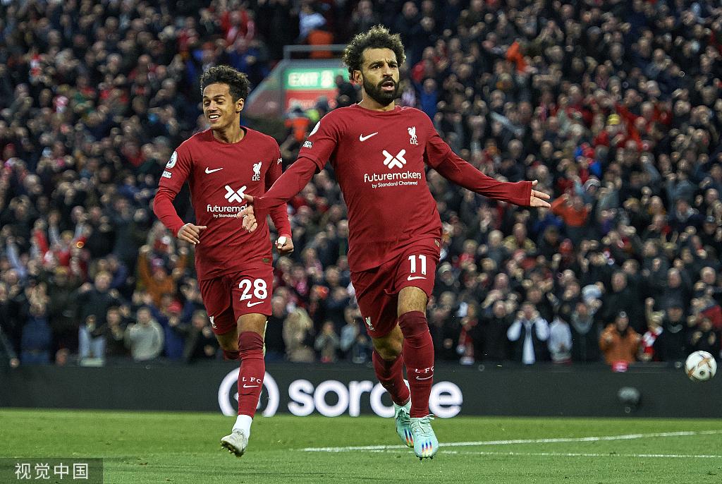 加盟利物浦以来,“法老”是各项赛事对曼城进球最多的球员,达到了9球,在他身后是打进7球的马内和打进6球的孙兴慜、瓦尔迪。本场比赛则是他连续4个主场对阵曼城有进球。