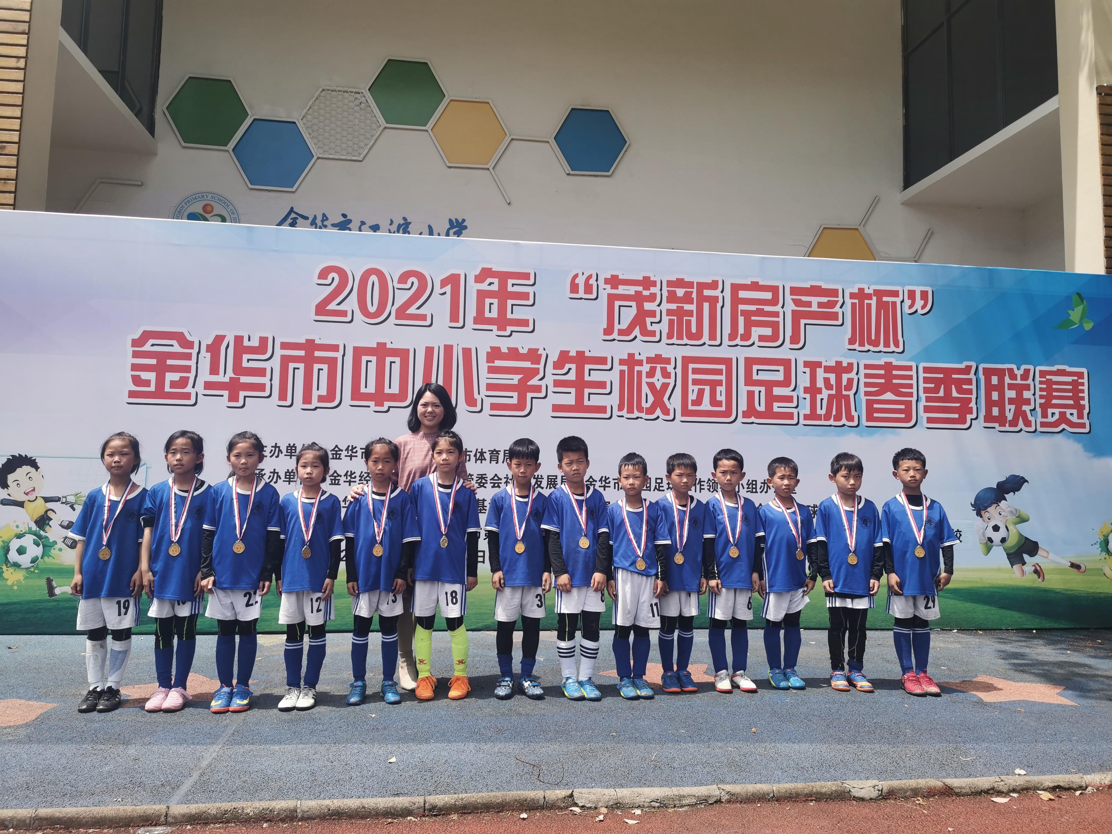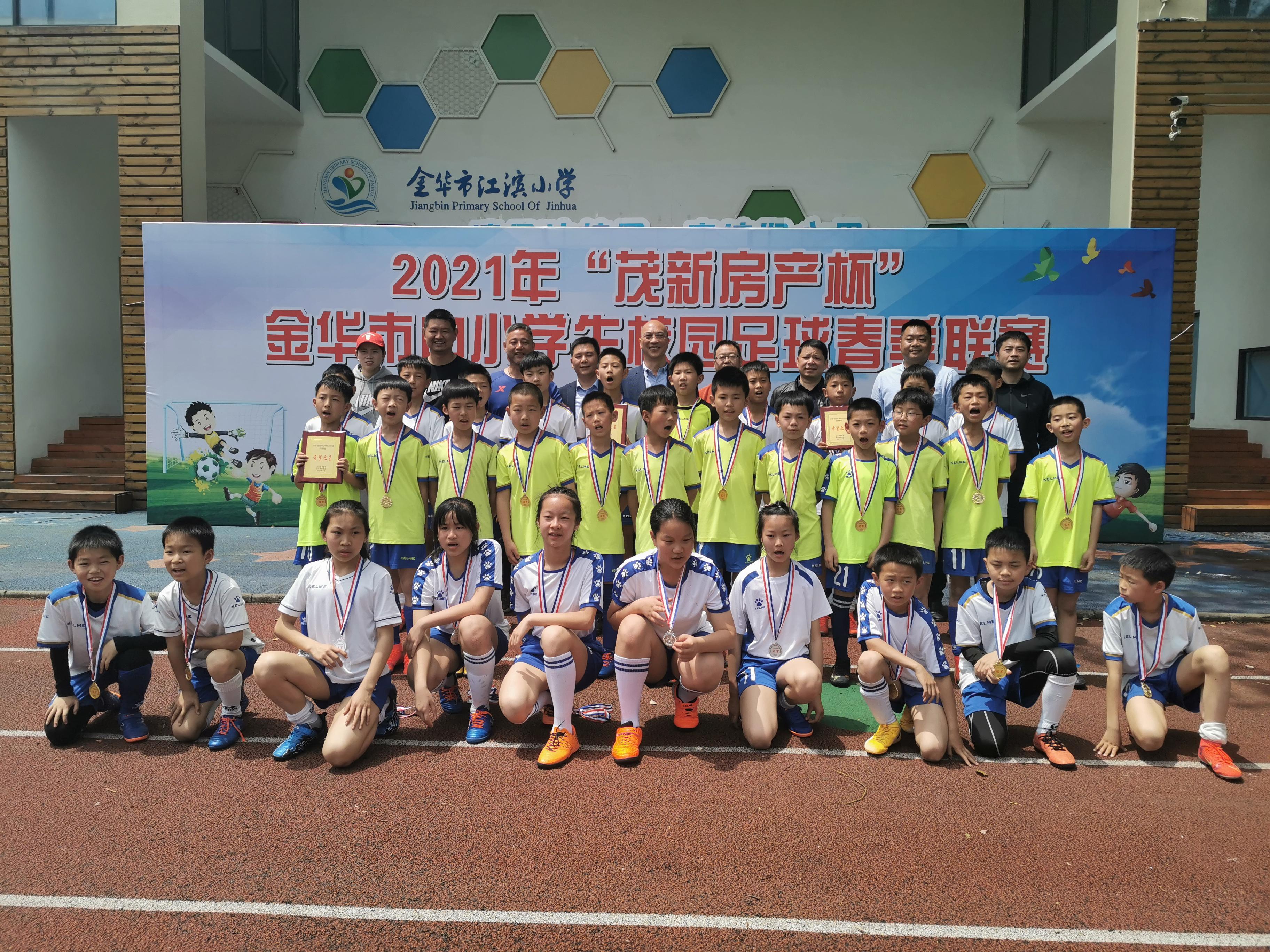 今天上午,随着男甲决赛哨声响起,金华市江滨小学以2∶1险胜对手夺冠,婺城区北苑小学屈居亚军,但创下本队最好成绩。