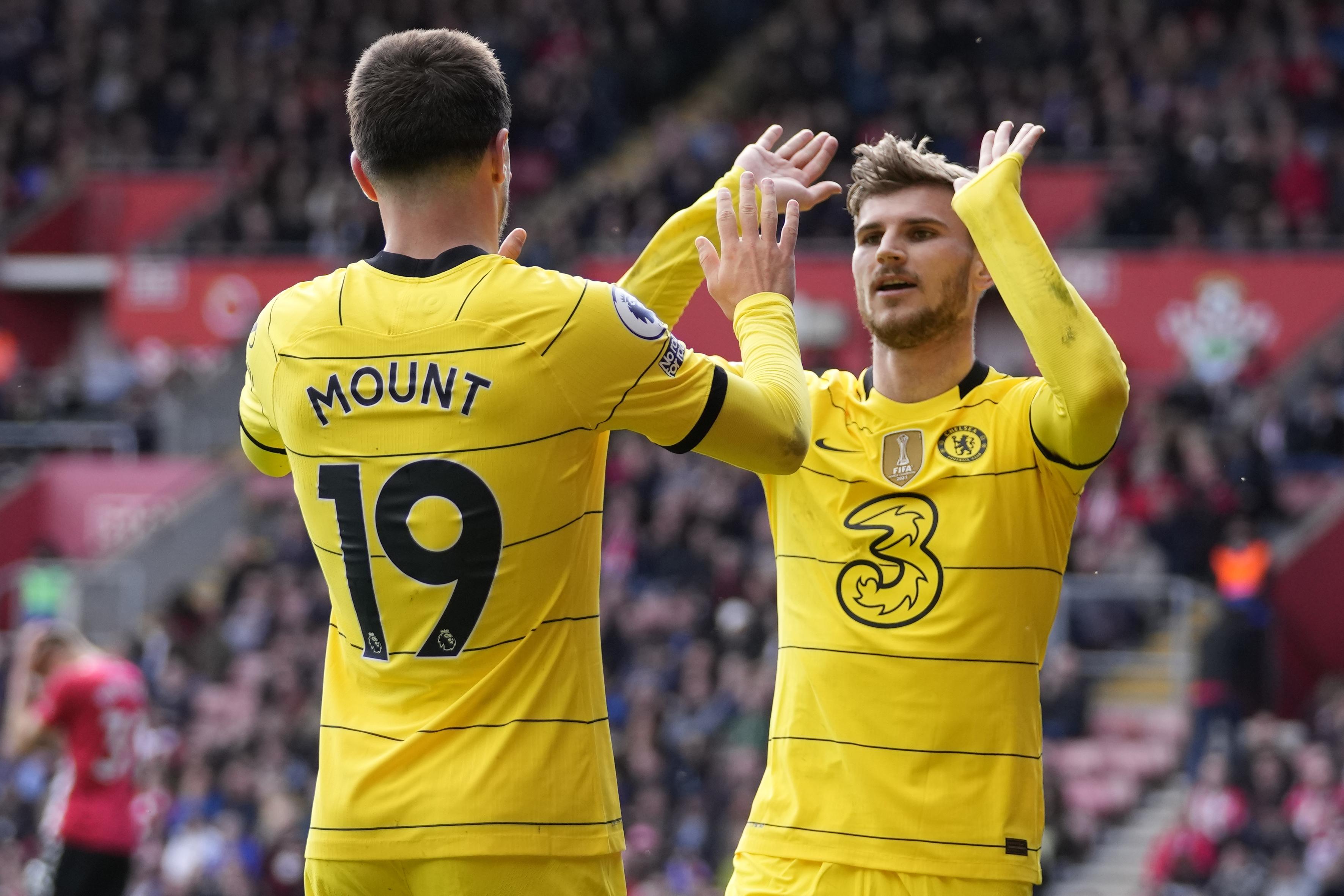 芒特第16分钟破门得分,维尔纳、哈弗茨接连破门扩大比分。下半时,维尔纳、芒特双双再度进球实现梅开二度。