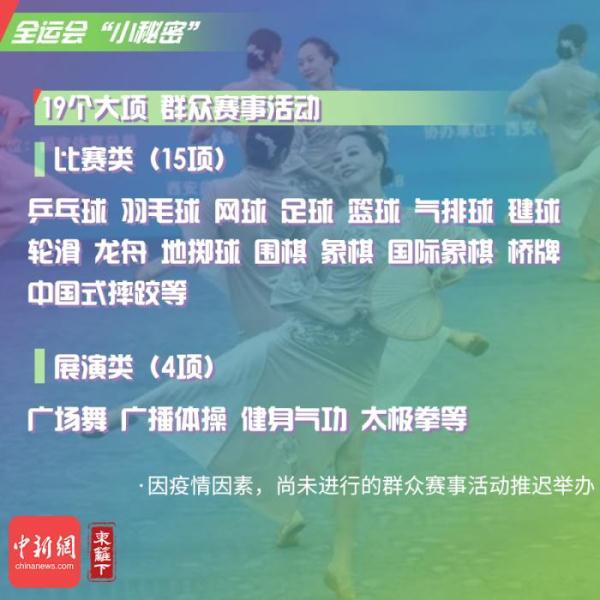 作为国内水平最高、规模最大的综合性运动会,每届全运会的比赛项目都会有所微调。而除了这些专业运动员参加的项目,本届全运会还将举行19个大项的群众赛事活动,其中就包括广场舞、广播体操、太极拳等这些群众喜闻乐见的休闲项目。而这也意味着,普通的体育爱好者也有机会登上全国最顶尖的舞台。