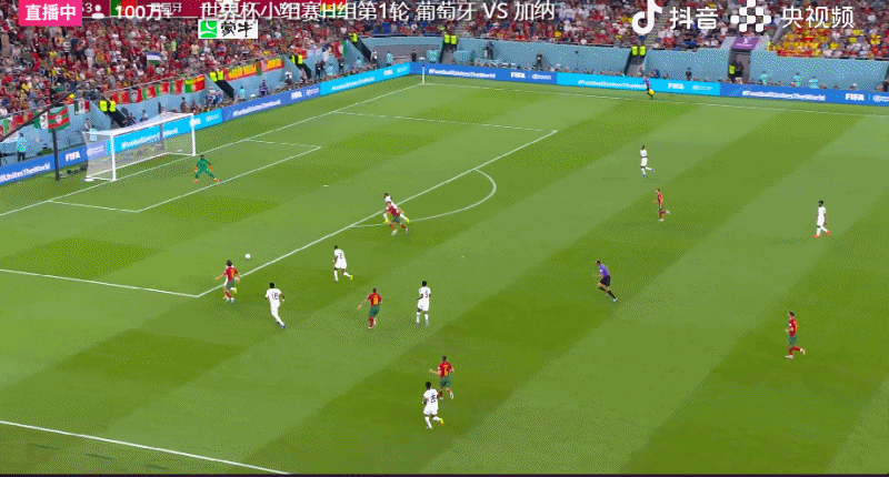 第78分钟,葡萄牙队后场抢断,B费在前场将球转移到右路,费利克斯来到禁区右侧面对门将挑射破门,葡萄牙队2-1领先加纳队。