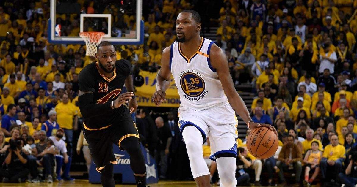 这赛季他们卷土重来,在得到凯文-杜兰特之后,他们在锋线上终于有人可以和詹姆斯叫板了。