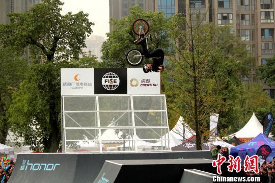 11月5日,2017FISE世界极限运动巡回赛成都站比赛圆满收官。来自30多个国家和地区的120余名顶尖极限运动高手在成都展开了小轮车、轮滑、土坡山地车、滑板等几大项目的激励角逐,经过层层比拼,来自法国的尤马和美国的尼克分别摘得轮滑组和小轮车组的冠军。