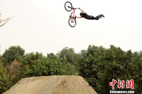 土坡山地车的难度系数超高,滞空时间最长,危险系数也很大。 吕杨 摄