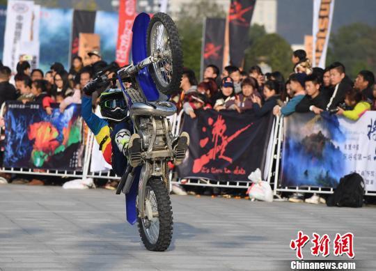 图为12月9日,福建将乐精彩刺激的极限摩托表演吸引了许多市民前来观看。