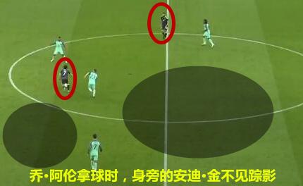 而安迪•金的前提必然使得贝尔更多地回撤中场,两者的位置也是互相关联的。第20分钟贝尔从中场的突破后的下底传中险些助攻安迪•金破门。关于贝尔的位置问题,小编下文详细说明。