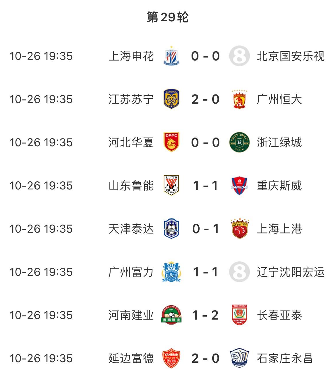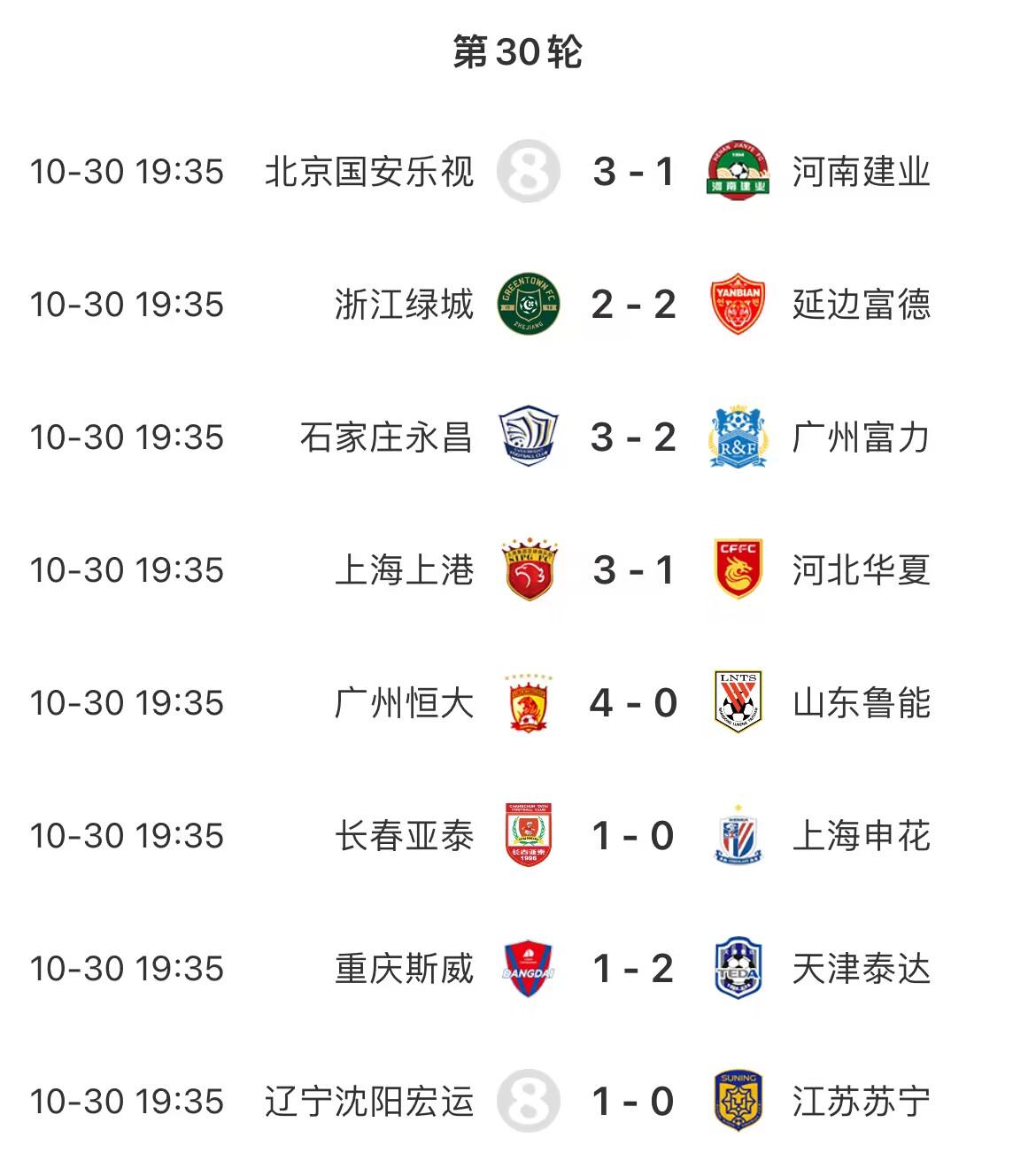2016赛季中超最后三轮赛果: