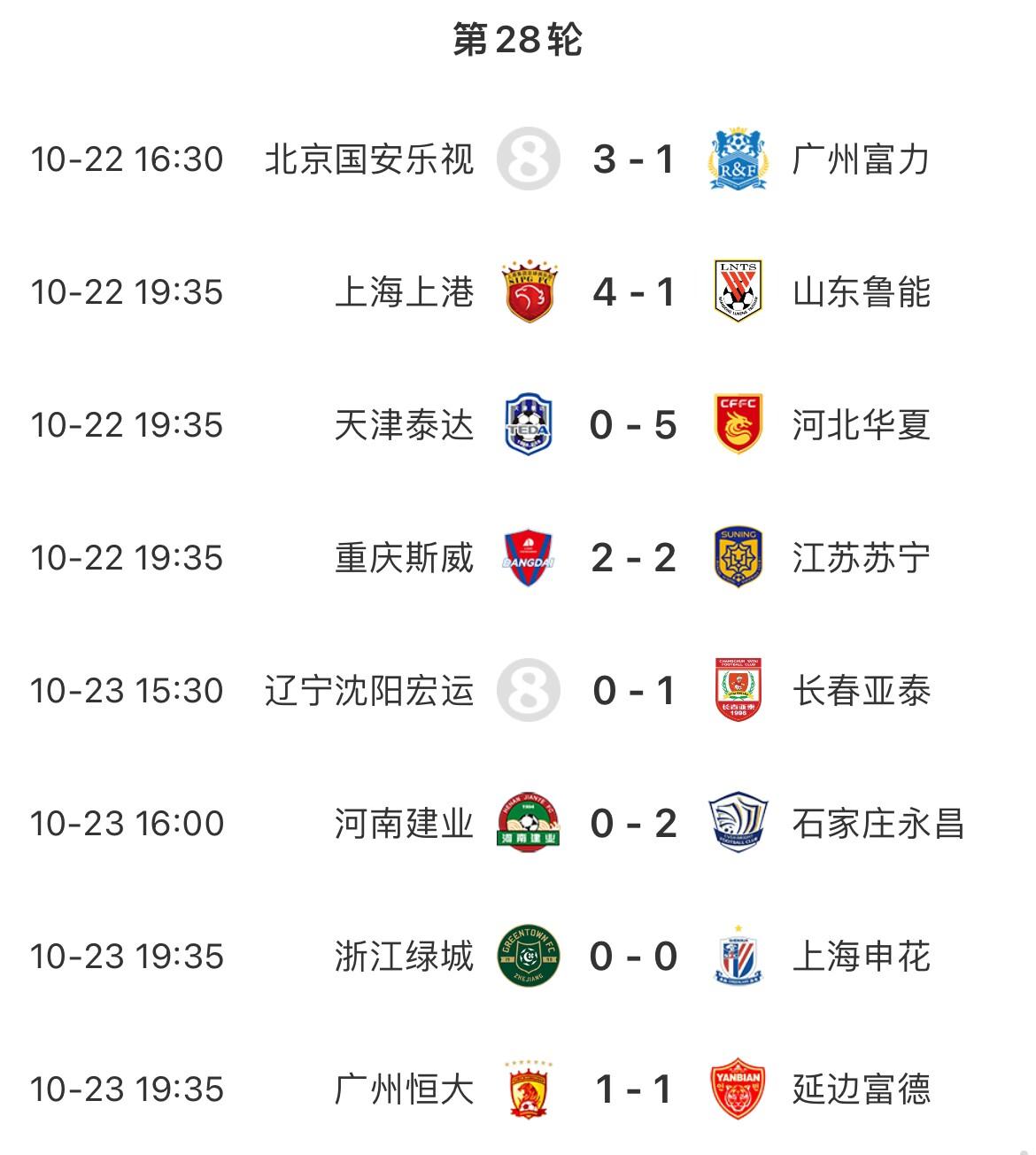 2016赛季中超,浙江绿城和石家庄永昌最终降级,倒数3-7名分别是山东鲁能、河南建业、长春亚泰、天津泰达和辽宁沈阳宏运。最后三轮中超,山东鲁能1平2负、河南建业3战全负、长春亚泰3战全胜。此外,泰达则是1胜2负,辽宁沈阳宏运1胜1平1负。
