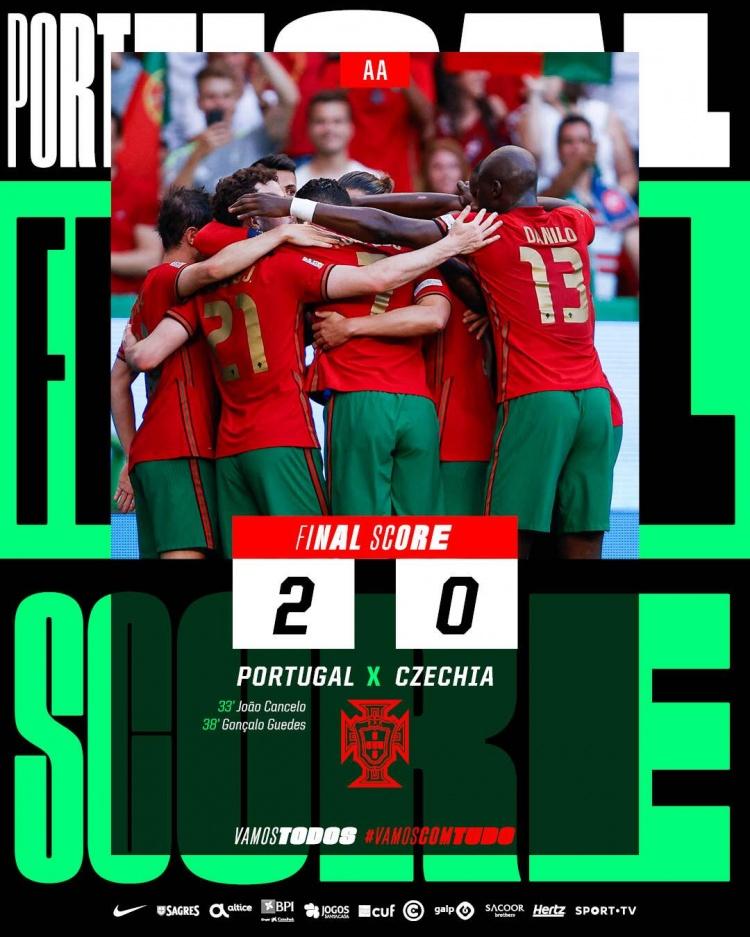 最终,全场比赛结束,葡萄牙队在客场4-0大胜捷克队,升至本组头名。
