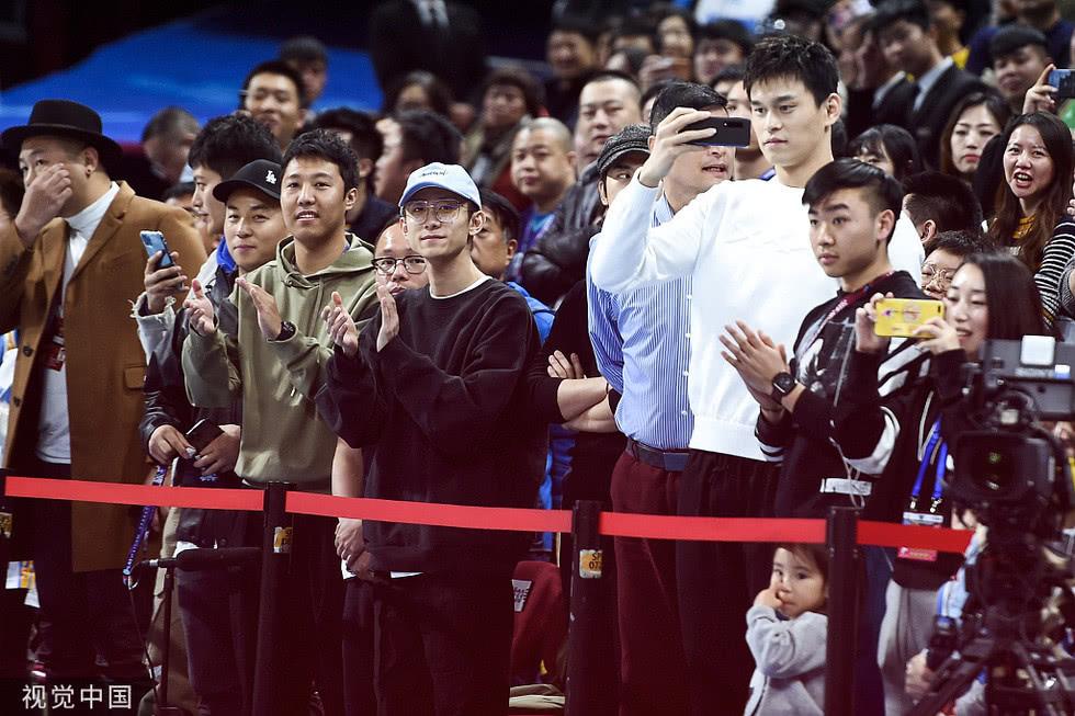 除了这两位电影明星,前端时间刚刚经历了听证会风波的孙杨也现身球场。因为身材高大又穿着一身白衣,站在人群之中的孙杨显得特别显眼。