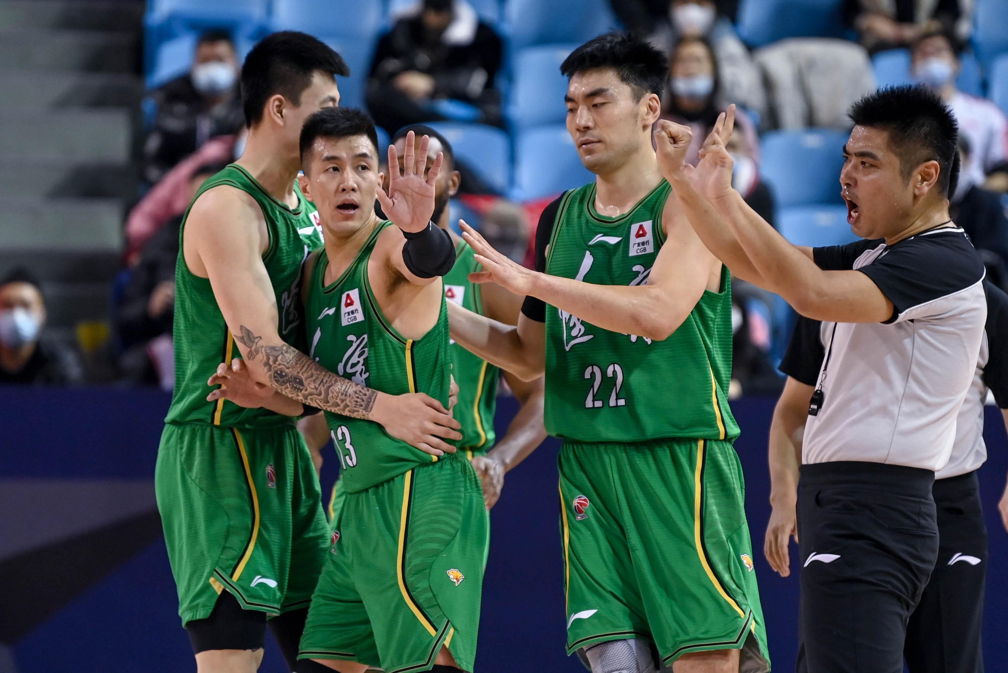 1月11日,辽宁本钢队球员郭艾伦(左二)在比赛中。 新华社记者 颜麟蕴 摄