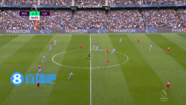 直播吧4月10日讯 曼城vs利物浦德布劳内破门后,镜头给到场内,草地上出现蓝色烟雾弹。安保人员入场处理后比赛继续。