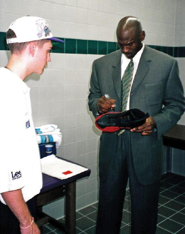 乔丹在这双鞋签名,把他送给了前掘金球童TJ-刘易斯,后者现在将其拍卖。