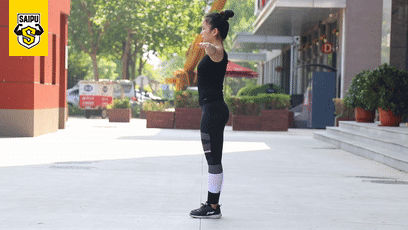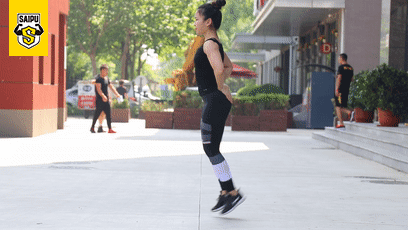 经过前两个动作的热身,我们的身体已经开始慢慢热起来了,可以稍微加大动作难度。开合跳要求比较好的心肺功能。不要求跳很高,稍微离开地面即可。