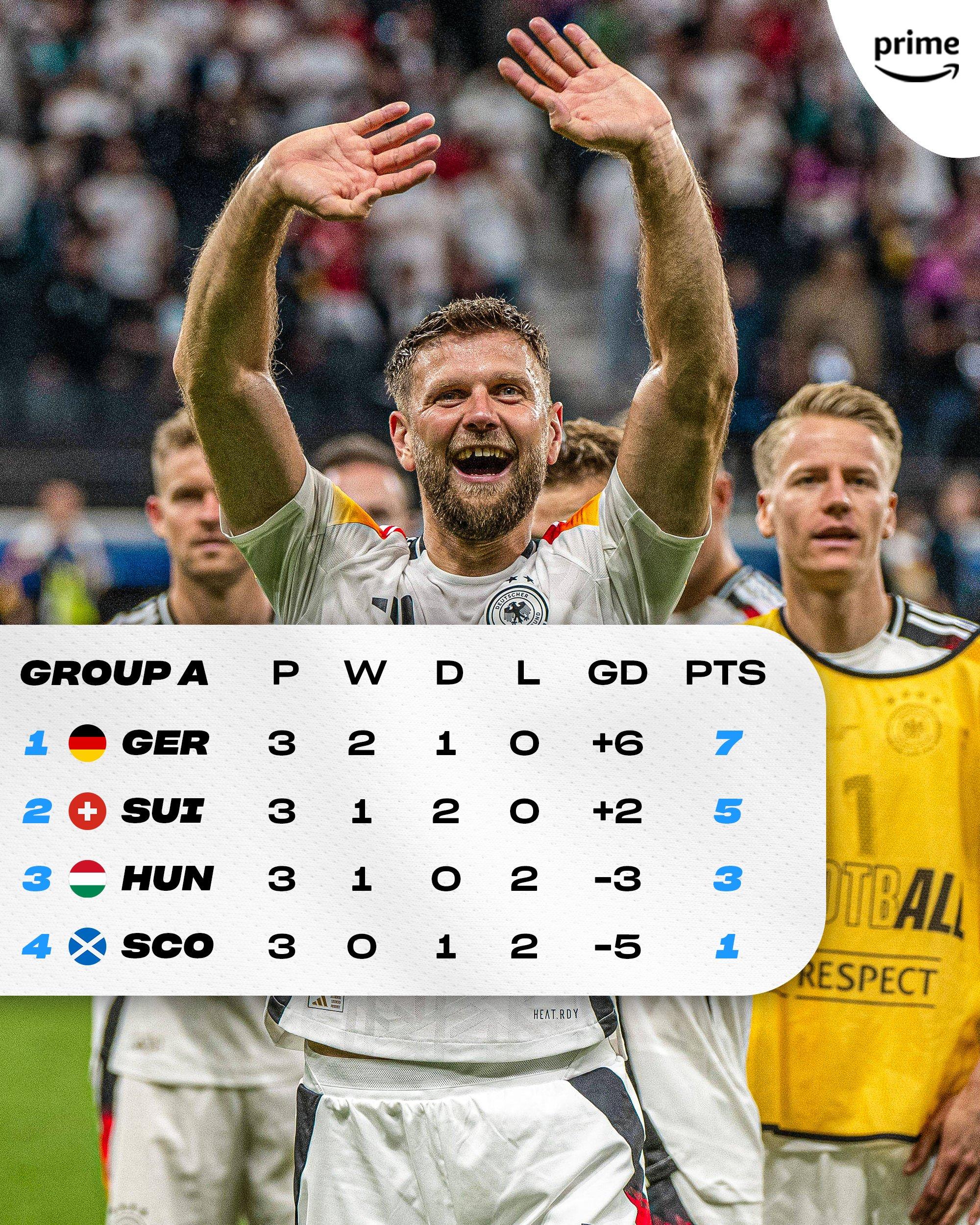 德国队成为2008年的荷兰队后,第二支在欧洲杯开局前两战攻入7球的球队。开局连胜终结了2012年欧洲杯以来德国队在4项大赛(3次世界杯、2次欧洲杯、1次联合会杯和2次奥运会男足小组赛)中,连续8次大赛未能开局连胜的尴尬纪录。哪怕德国队2014年世界杯和2017年联合会杯夺冠,2016年里约奥运会拿到银牌都未能开局连胜。