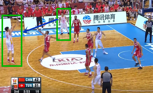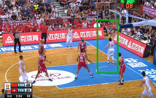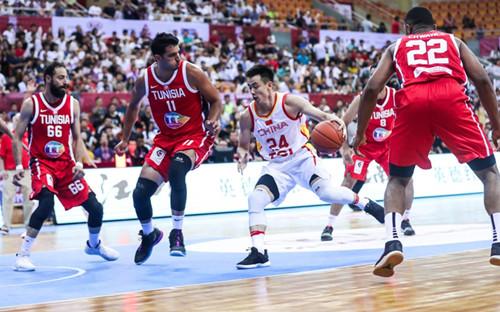 突尼斯运球刚至半场,周琦以长臂直接抢断,虽然赵继伟送空中接力未果,但周琦还是轻松将球放入网窝,52-31。