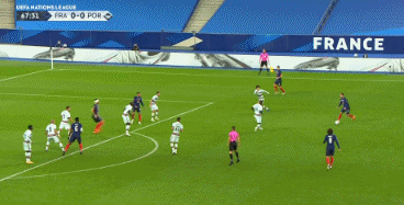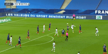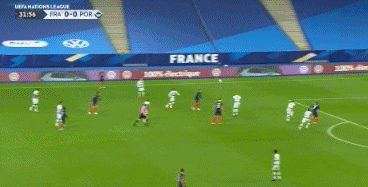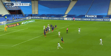 第21分钟,坎特中后场抢球时踩人犯规,葡萄牙队获得任意球,布鲁诺-费尔南德斯右脚远射打在帕瓦尔身上,皮球最终飞出底线。