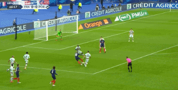 第53分钟,拉比奥在禁区左侧拿球后起脚低射,葡萄牙门将将球扑出,但是出现脱手,坎特跟进射门,皮球入网,法国1-0葡萄牙。