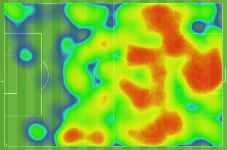 直播吧1月27日讯 12强赛B组第七轮,中国男足0-2客负日本。全场热区图、热点图如图。