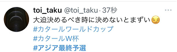 比赛开始前,由于时间缘故,再加上有日本女子偶像团体在开赛前发出为日本队加油助威视频,吸引了不少眼球,日本社交媒体上对本场球赛本身的讨论并不活跃。而到了日本时间19时开球时刻,有不少人分享说自己刚刚下班,准备开始看球。