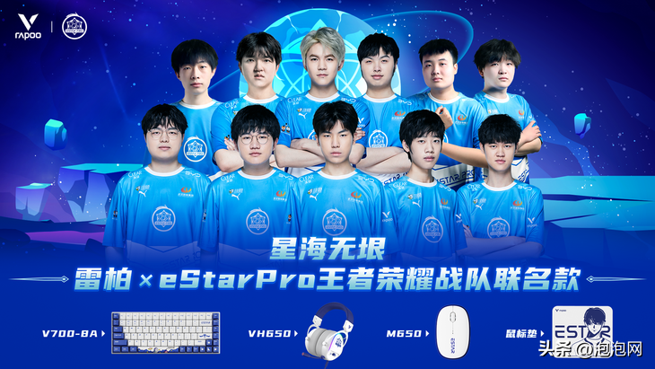 逐浪新生,E口同声,“中国老牌外设大厂”与“KPL绝对王者”,以标志性元素探索联名,雷柏VH650虚拟7.1声道游戏耳机武汉eStarPro王者荣耀战队联名款上市。