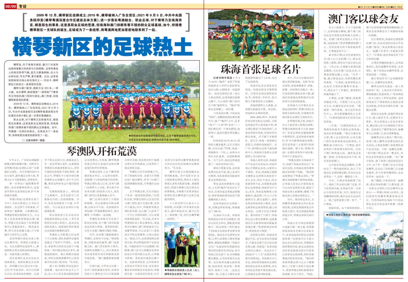 除了踢球,大家也经常一起聊球,现在珠海和澳门人都知道,有一支职业足球队已经在横琴应运而生——琴澳(珠海)足球队,他们即将代表横琴粤澳深度合作区,代表珠海参加2021年中国足球协会会员协会冠军联赛(简称中冠)。