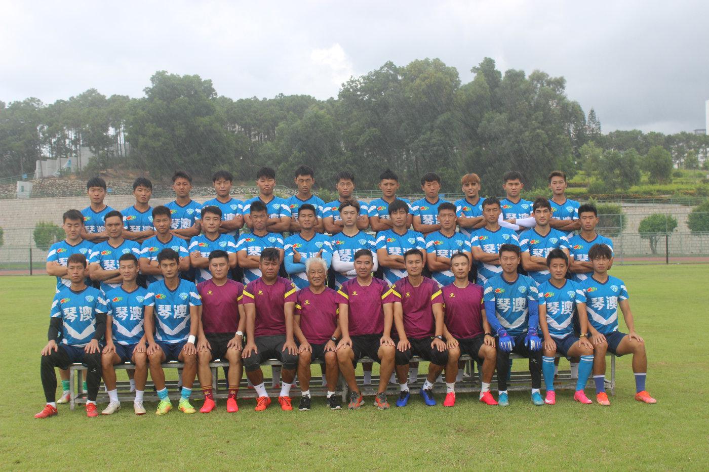 即将参加中冠的琴澳足球队,立足于横琴粤港澳深度合作区,北京足坛名宿郭瑞龙(前排中白发)担任领队