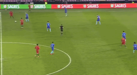 第36分钟,葡萄牙右侧肋部送出直塞,布鲁诺-费尔南德斯插上顺势大力抽射,皮球击中防守球员的身体后偏出了右侧边线。第38分钟,贝尔纳多-席尔瓦禁区内持球吸引防守后将球回做,禁区外跟进的布鲁诺-费尔南德斯迎球抽射,皮球稍稍高出球门横梁。↓