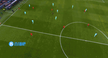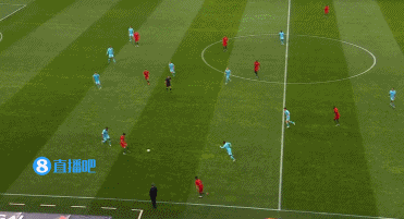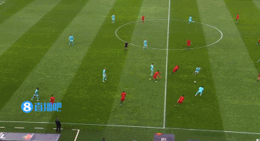 这次就是主队在后场快速分球让对手边后卫被迫前顶,因为前锋和中场都来不及到位。但是在夸雷斯马接到传球后没有办法轻松的找到传给坎塞洛的路线。原因就在于中卫阿克能够第一时间跟出来进行限制。