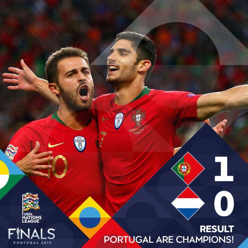 北京时间6月10日2时45分(葡萄牙当地时间9日19时45分),2018-19赛季欧洲国家联赛决赛在波尔图巨龙球场举行,葡萄牙1比0力擒荷兰,继2016年欧洲杯后再夺欧洲大赛奖杯,成为1998年法国之后首支在本土夺得大赛荣誉的欧洲球队。贝尔纳多-席尔瓦助攻格德斯打进致胜球。