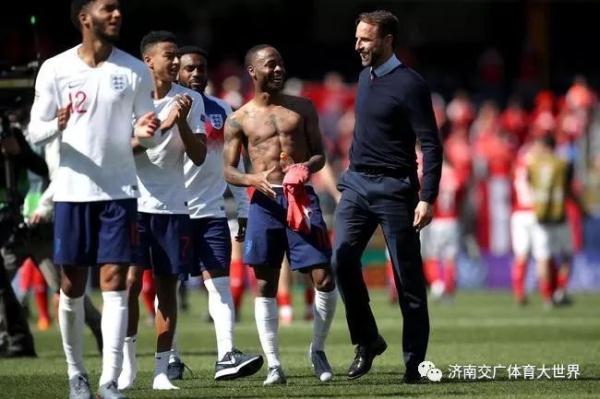 索斯盖特与球员们庆祝胜利
