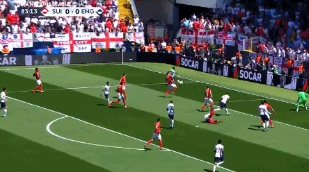 凯恩在开场第2分钟就打中横梁,瑞士队后卫的解围也打中门柱弹出,斯特林再次诠释快乐足球,全场浪费多次机会。