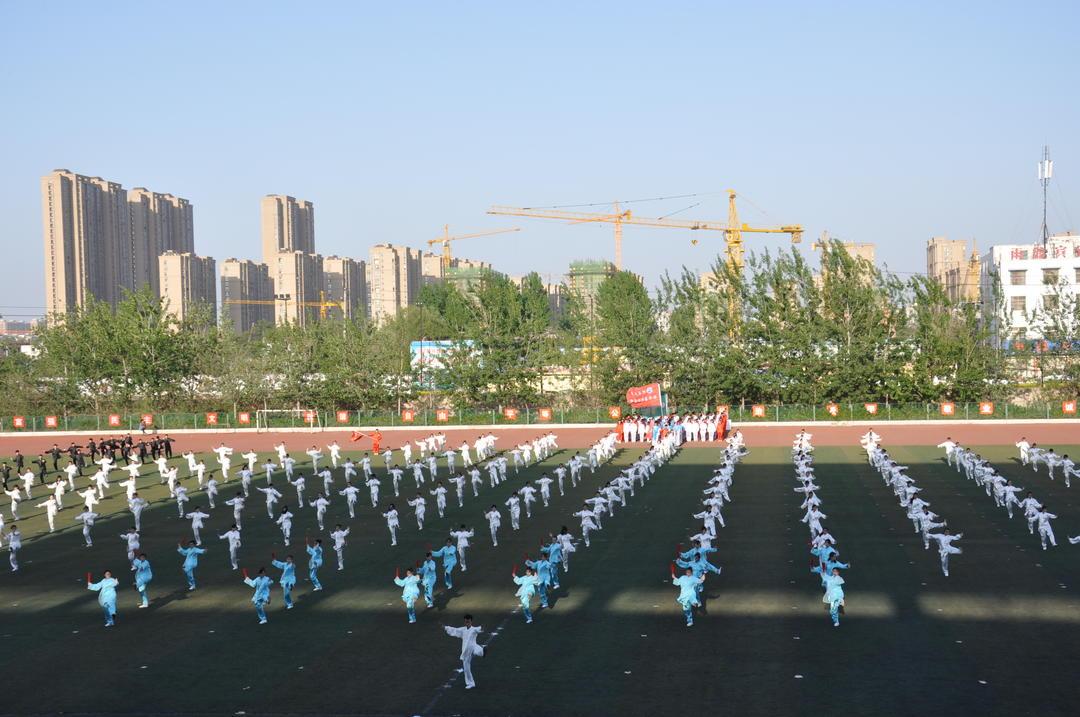阳光太极,阳光运动。4月19日下午,河南大学第十六届学生太极拳比赛在金明校区和明伦校区同时开幕,来自两个校区的33支队伍近8000名本科生齐聚绿茵场,身着太极服,整装待发,舞动太极之美。