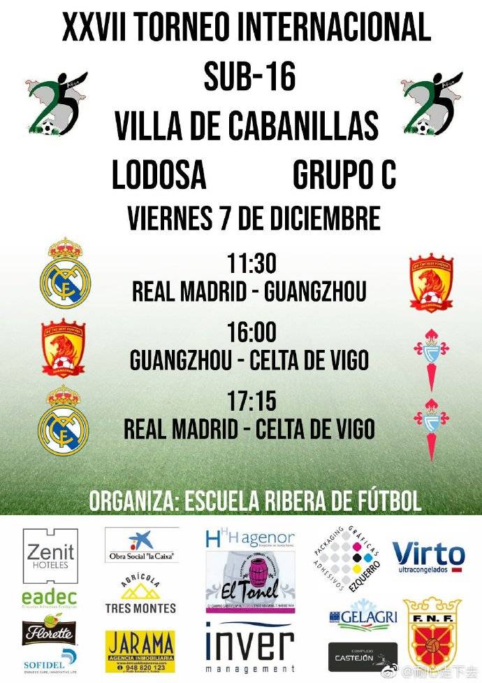 卡瓦尼利亚斯U16国际邀请赛是由西班牙北部地区里贝拉足球学校主办的一项青年队赛事,本届共有12支球队参赛,分为四个小组,除了皇家马德里、巴塞罗那等本土球队外,还有卡塔尔阿斯拜尔学院和广州恒大两支国外球队参赛。具体分组如下: