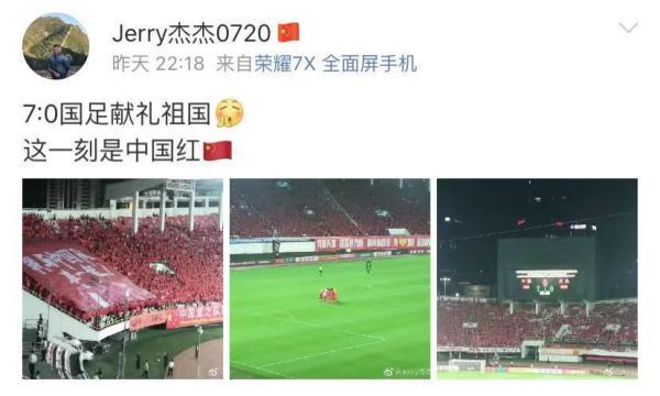 球迷齐声合唱《我和我的祖国》↓↓
