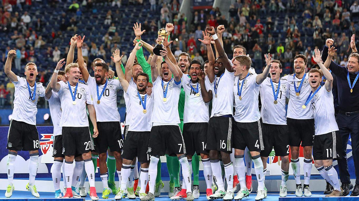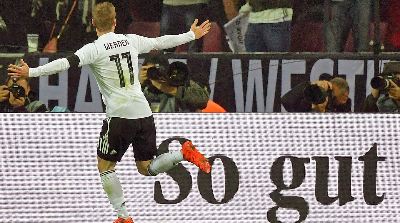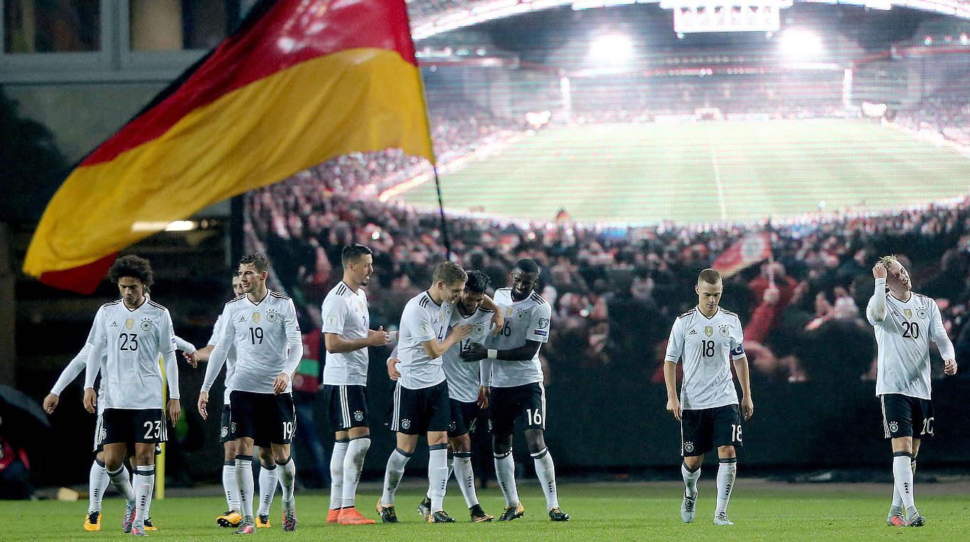 在11月15日的进行国际友谊赛中德国队凭借格策助攻施廷德尔的绝杀进球主场2-2战平法国队,结束2017年的最后一个国际比赛日,主教练勒夫在这一年使用了36名德国国脚,其中有8名上演了国家队首秀,德国队在2017年的15场比赛中赢了11场,平了4场,这意味着德国队自从去年在欧洲杯半决赛中0-2不敌法国队后就一直保持不败,其中在世预赛中10连胜直接晋级2018俄罗斯世界杯。