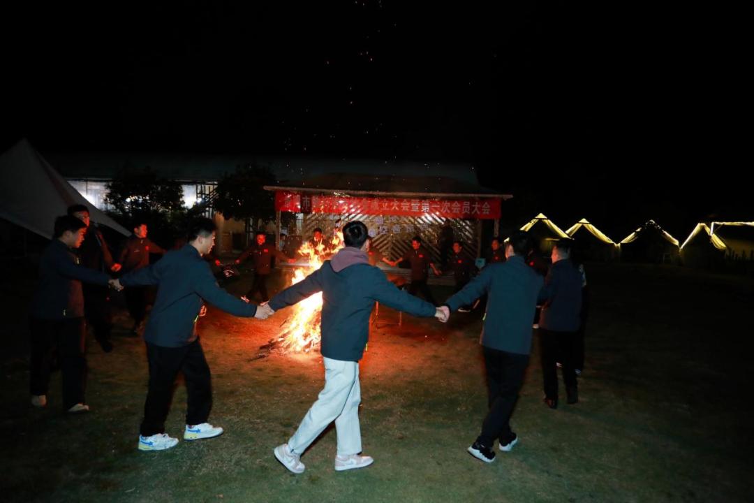 为了庆祝协会的成立,当晚还举行了一场别开生面的篝火晚会。会员们围绕着篝火,手拉手欢快地跳舞,笑声和欢呼声交织在一起,回荡在夜空中。大家一边享受着美食,一边分享着自己与散打搏击的故事,彼此之间的距离进一步拉近。