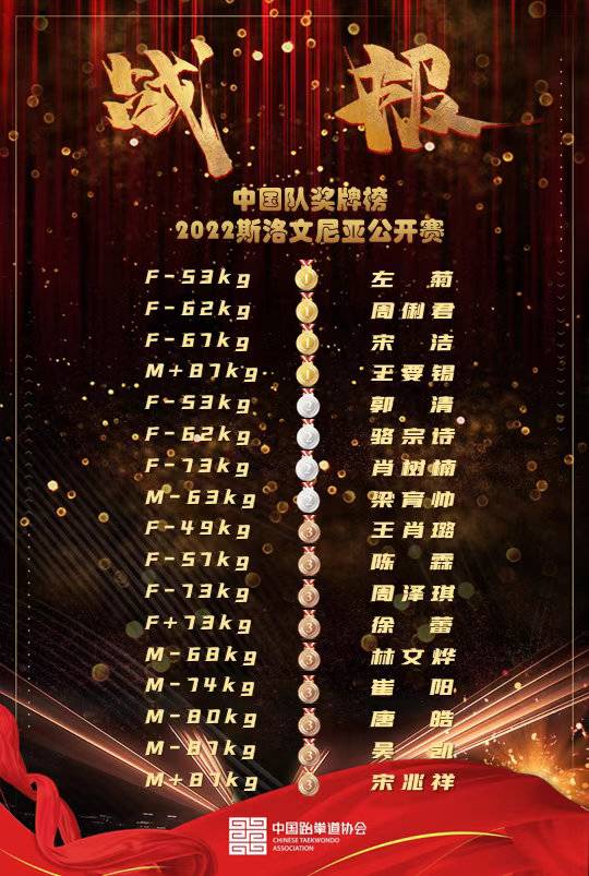 2022年世界跆拳道联盟斯洛文尼亚公开赛在卢布尔雅那举行。中国队此次共派出21名选手参赛,获得4金4银9铜的好成绩。