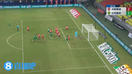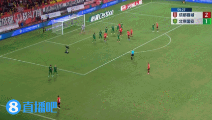 第51分钟,国安扳回一城!左路角球开到禁区曹永竞无人看防情况下高高跃起头球破门,蓉城2-1国安。↓